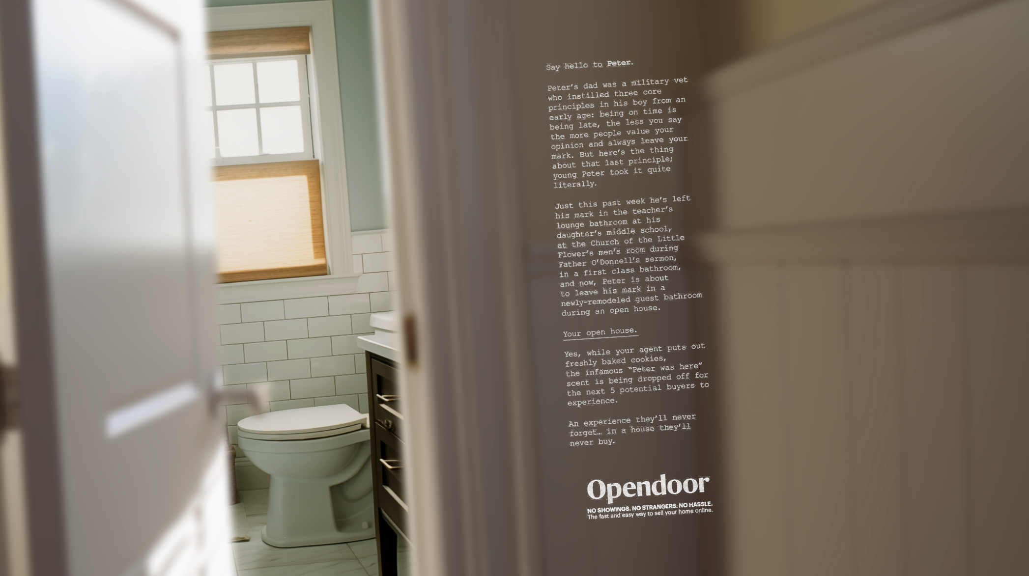 The worst part about doing an open house is probably the fact that strangers come into your home. So we wanted to show homeowners all the weird, bizarre, disgusting, and sometimes scary things people going to your open house might do, and use this to invite them to avoid it all by selling their home through Open Door instead.
